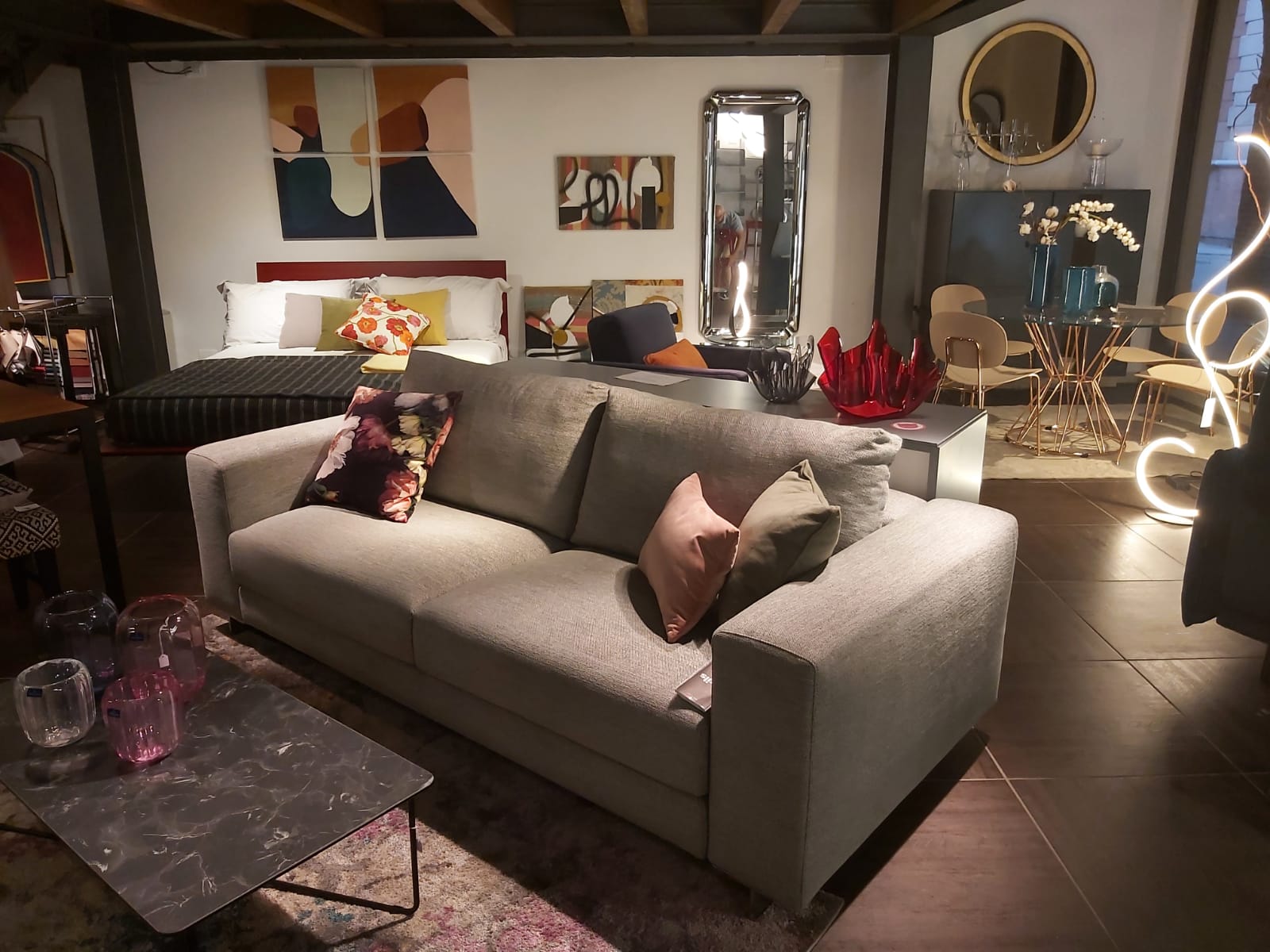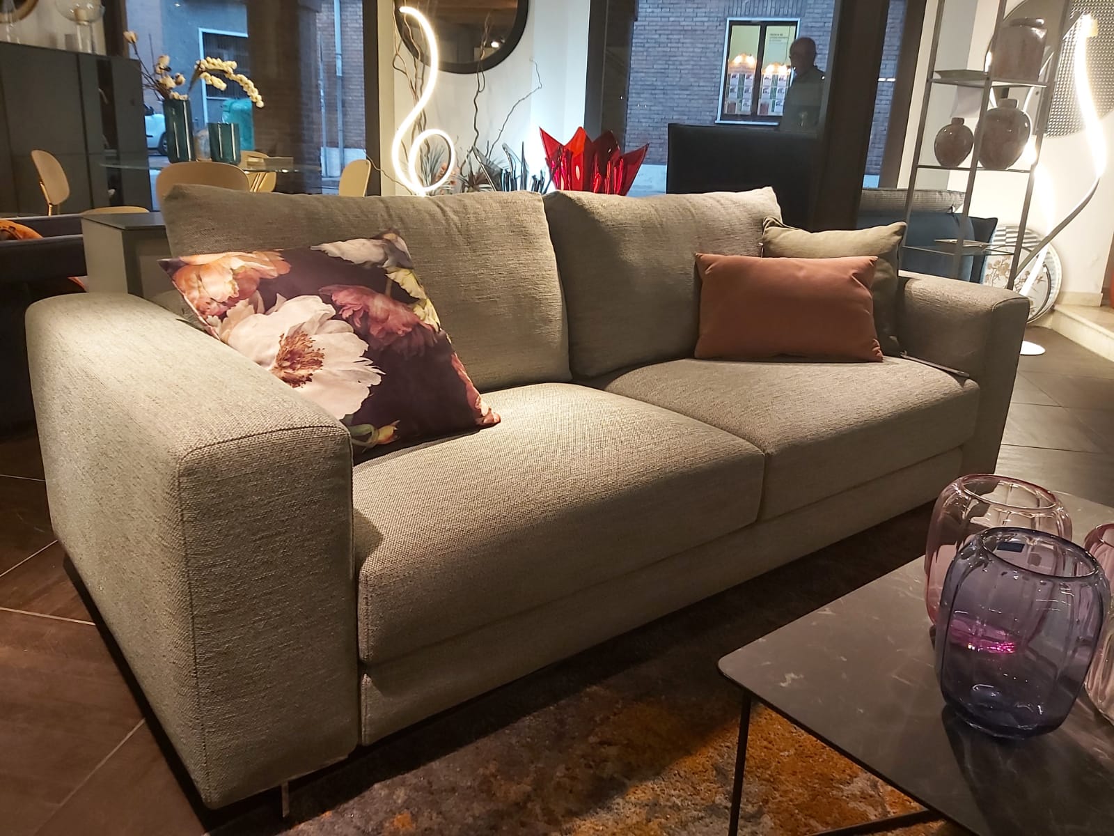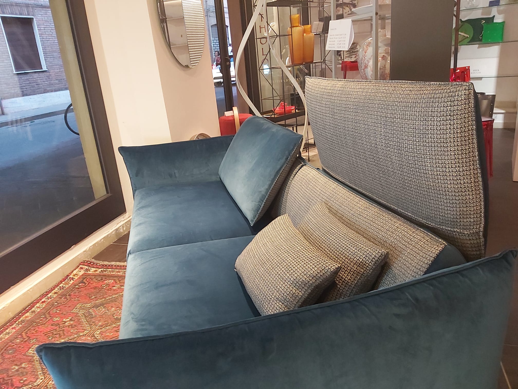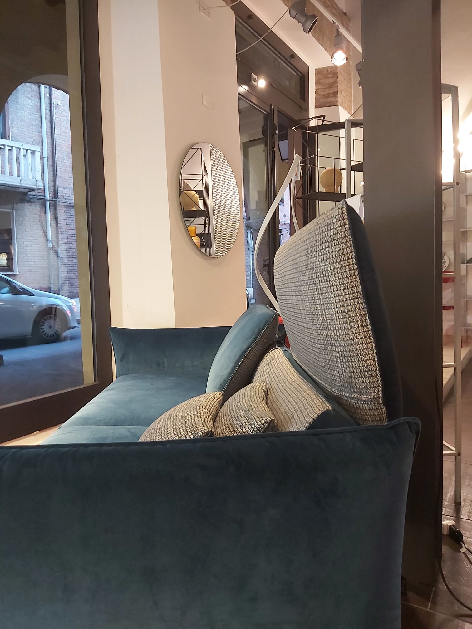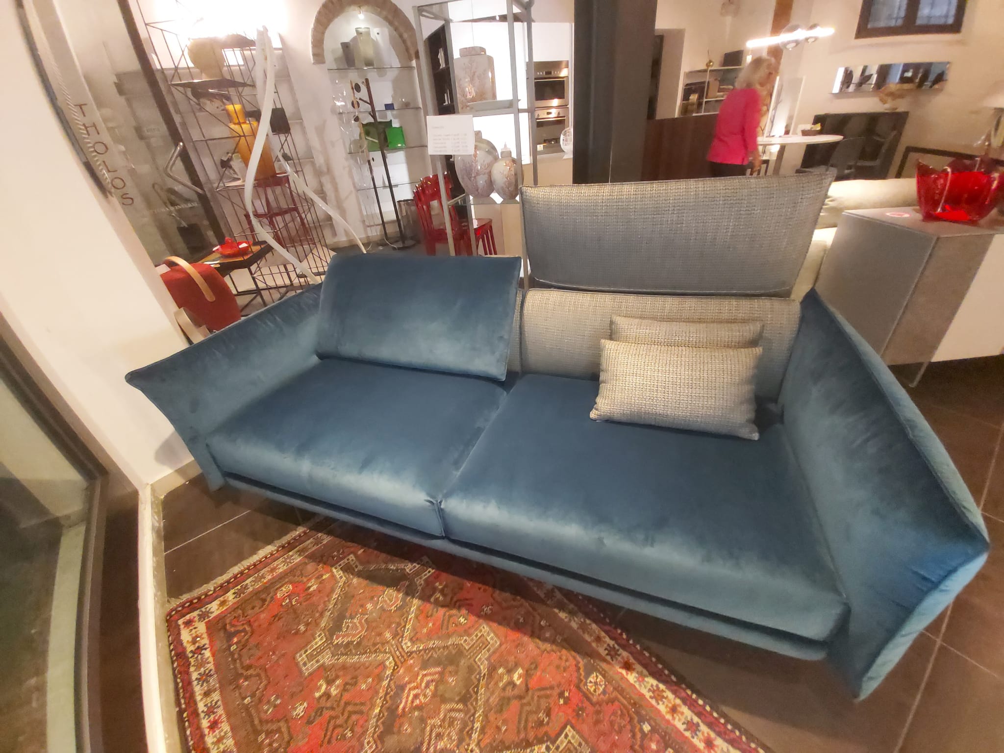 Top in quarzo, spessore 12mm. Ante laccate bianco opaco. Cucina composta da colonna a giorno laterale, colonna dispensa, colonna forno e colonna frigo. Isola profondità 75cm composta da base 120cm (due cassettoni, cassetto interno portaposate), base lavello, lavastoviglie e base dispensa. Pannello e colonna a giorno in rovere termocotto. Piano cottura da 73cm, forno, forno a microonde, frigo/congelatore Whirlpool, lavastoviglie AEG. Lavello e miscelatore Franke.